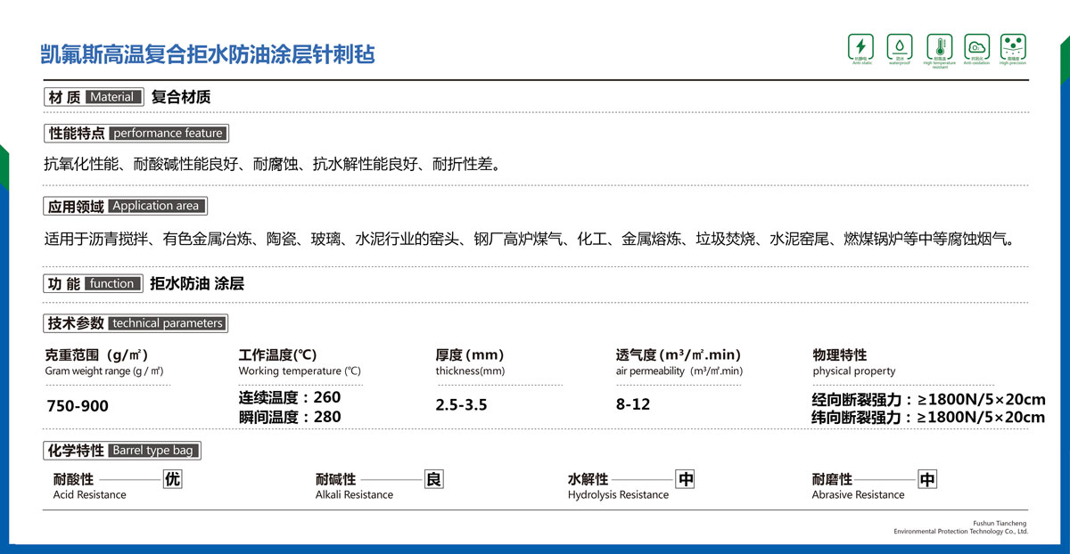 凱氟斯高溫復合拒水防油涂層針刺氈