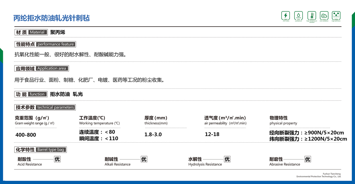 丙綸拒水防油軋光針刺氈